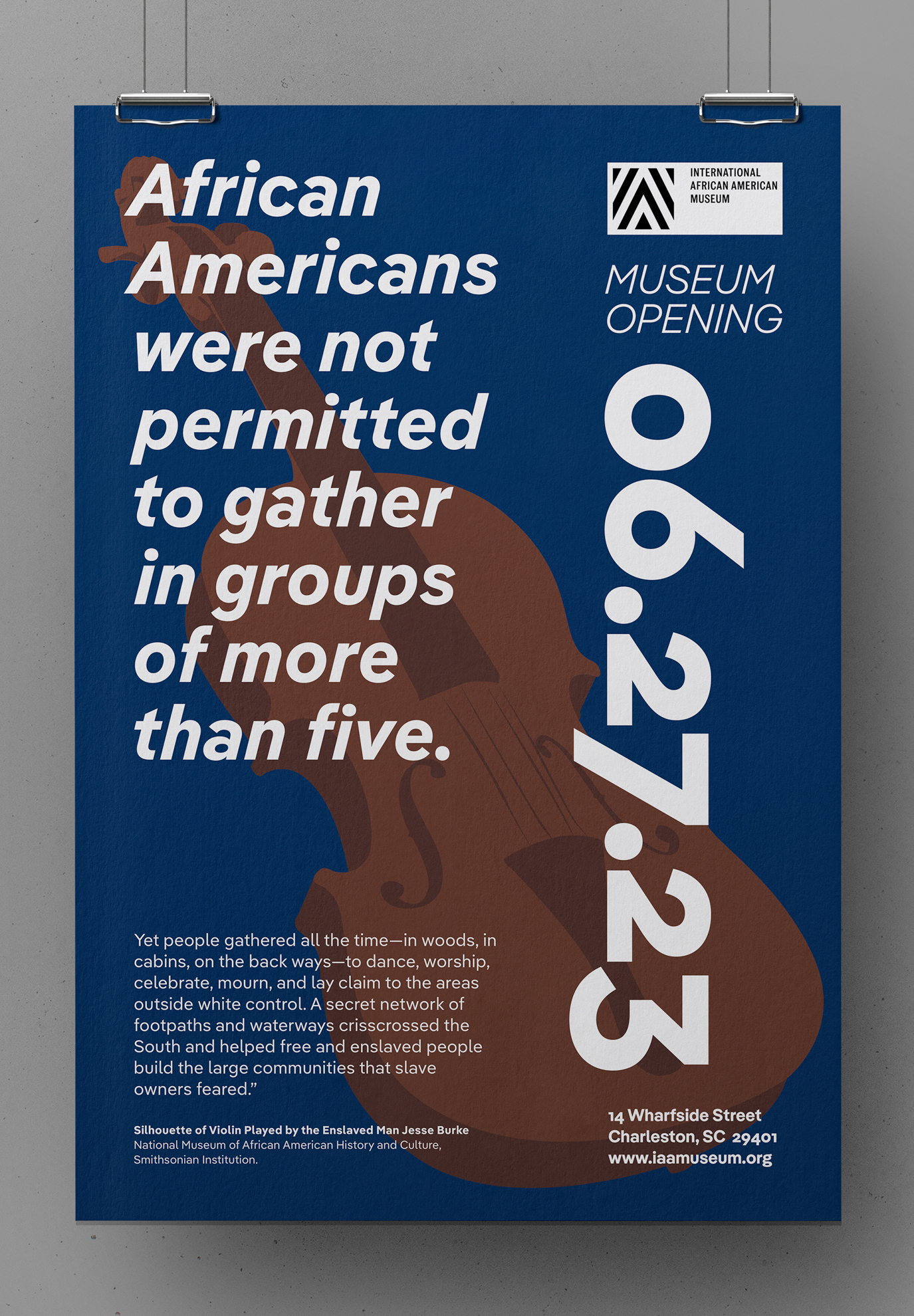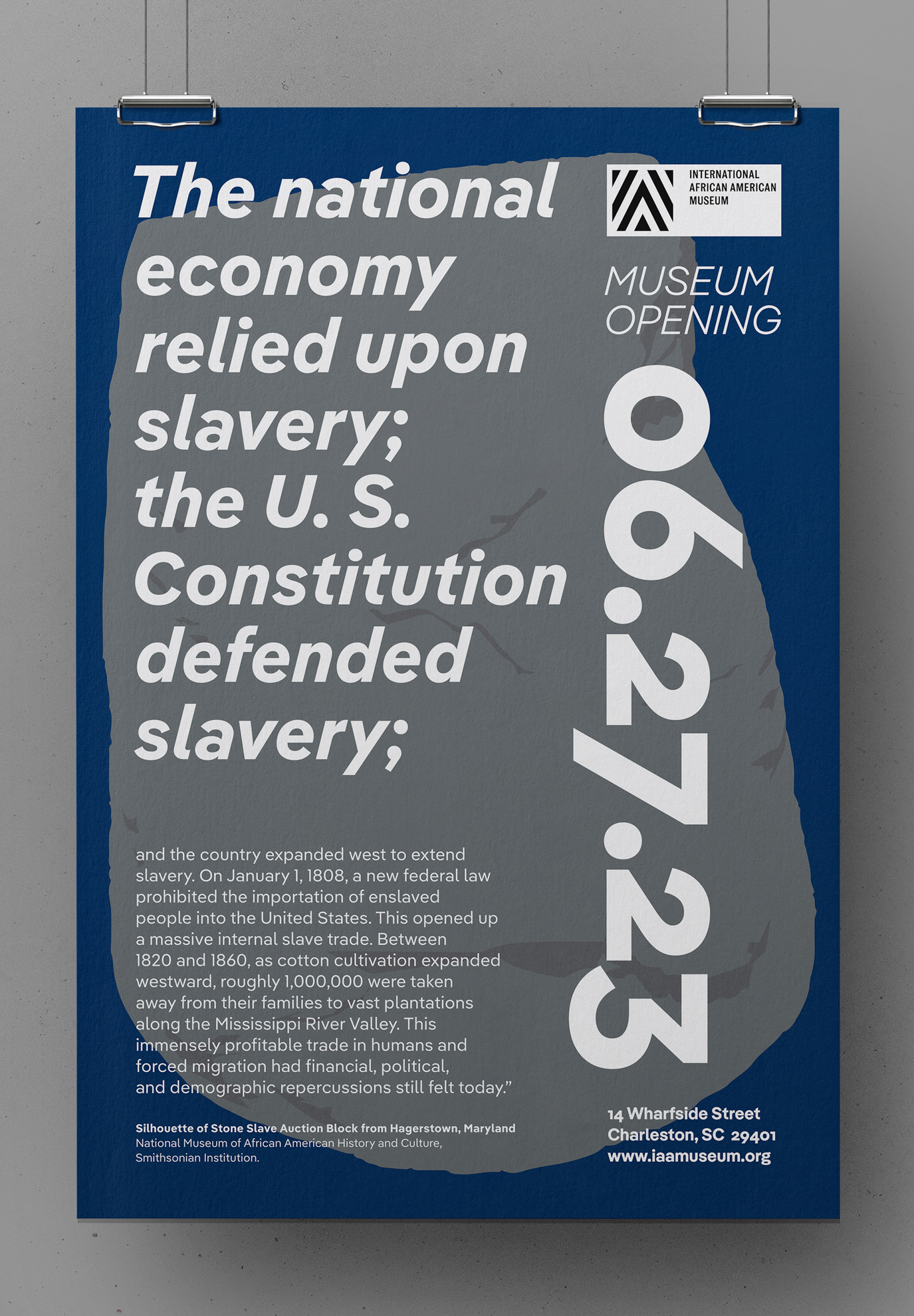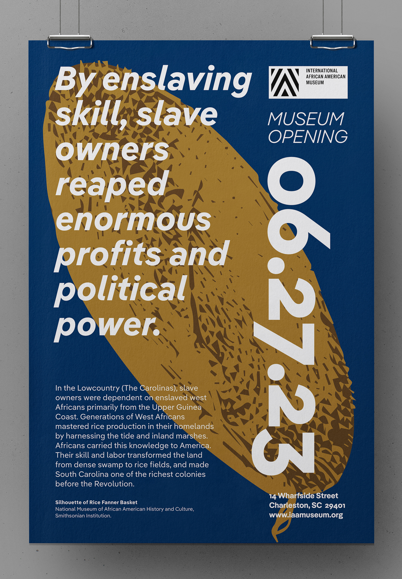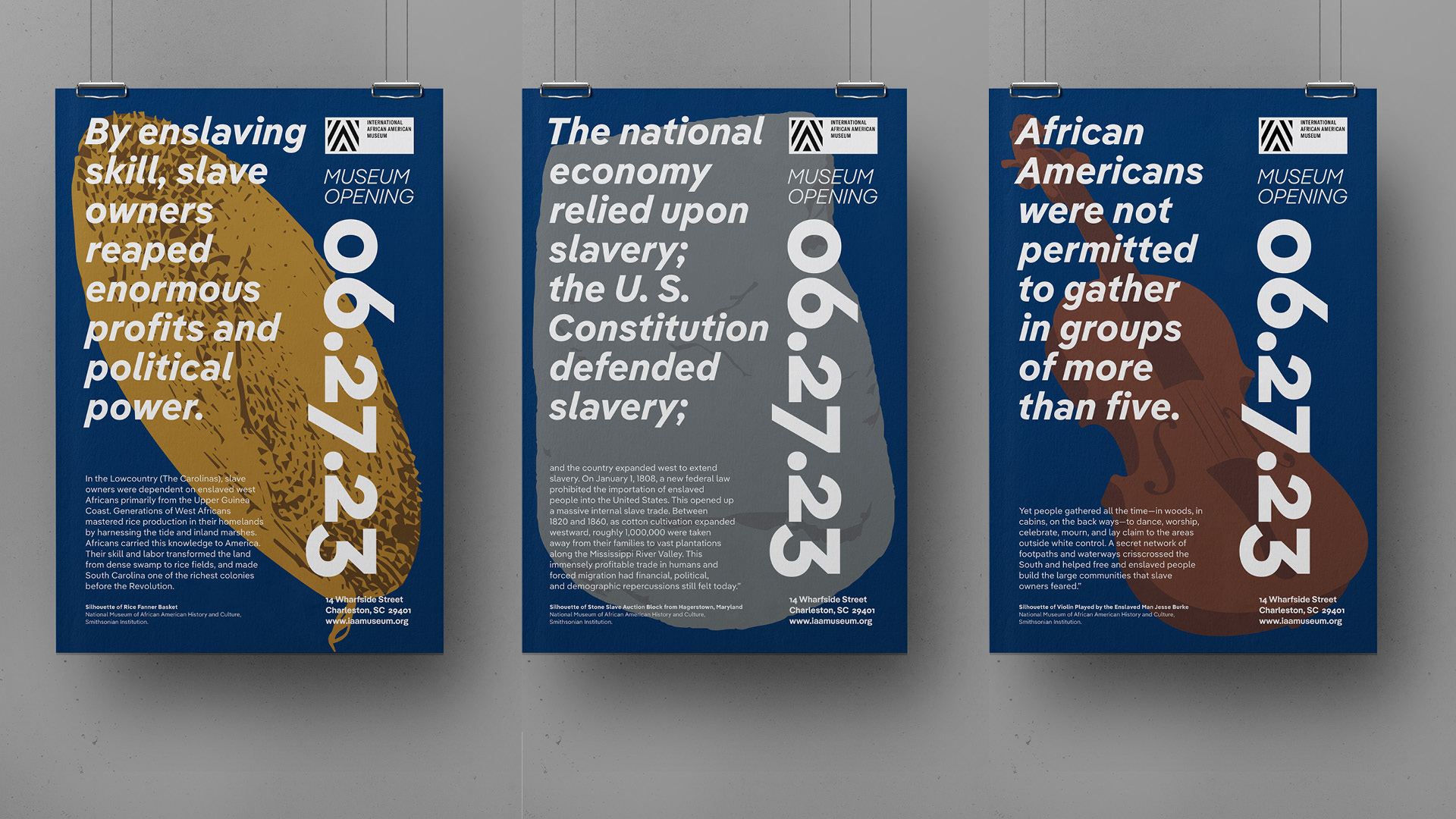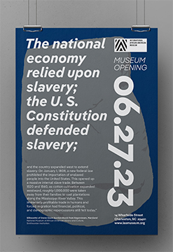 These posters were a class project for the opening of the International African American Museum in Charleston, SC. The designs feature historical objects to communicate the gravity of the subject without being graphic.