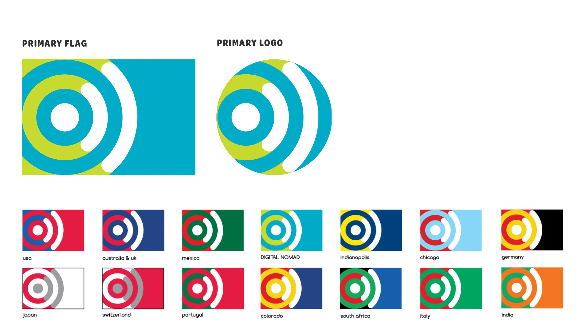 Bringing together digital nomads and those who service them, this brand needed a flexible international identity featuring a flag.
